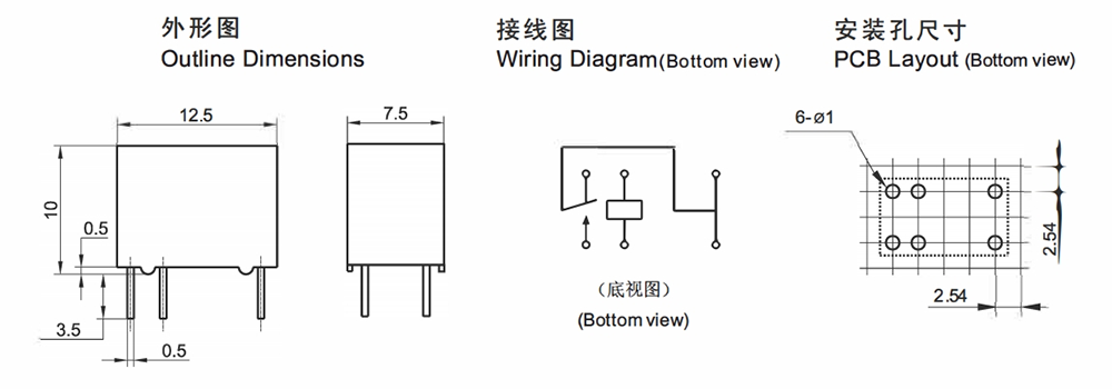 | Contact Rating | 0.5A 125VAC/1A 30VDC |